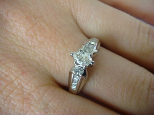 - 0.60 CT T.W. MARQUISE AND BAGUETTES LADIES ENGAGEMENT RING
