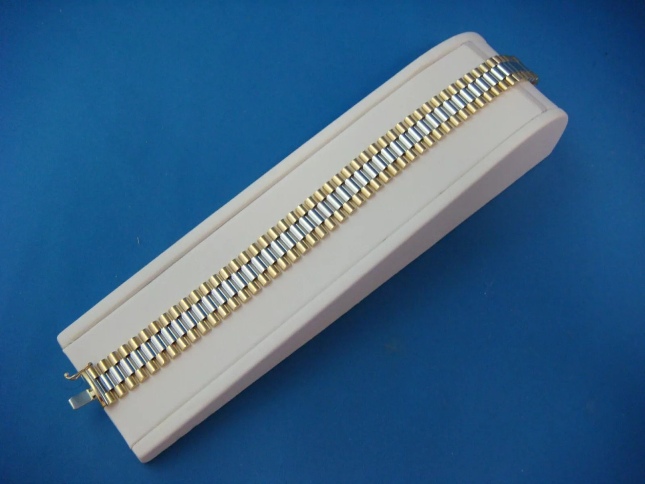 14 KT. 2 TONE SOLID GOLD ROLEX STYLE BRACELET 41.3 GRAMS 8.25 MM MADE IN ITALY. 13.75 MM WIDE.