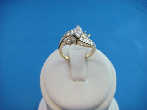 14k Gold Genuine Marquise and Baguette Cut Diamonds Engagement Ring