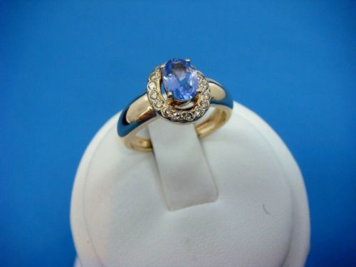 Nice Tanzanite & Halo Diamonds Ladies Gold Ring